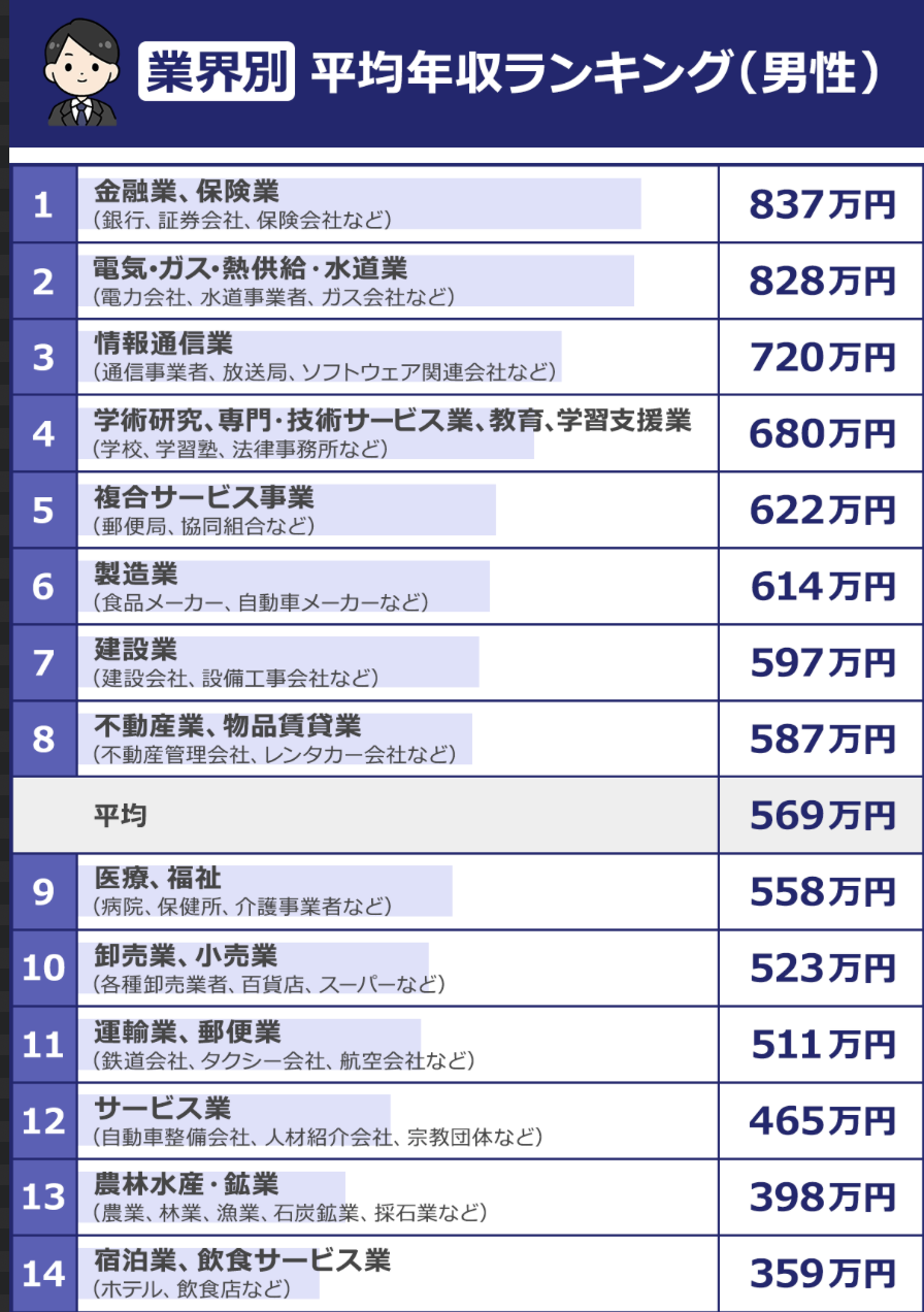 業界・職業・男女別給料が高い仕事ランキング[転職Hacks]