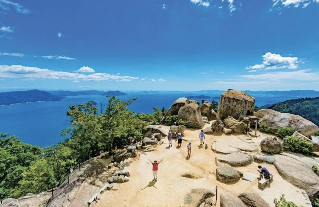 瀬戸内海의 섬들이 파노라마처럼 펼쳐지는 뷰가 압도적입니다.